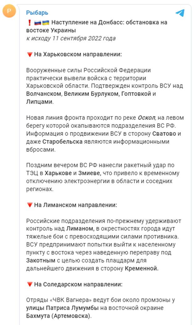 Перегруппировка сил России - так в Минобороны называют отвод подразделений с изюмского направления - встречена эйфорией в ВСУ. Как сообщает "Рыбарь", к вечеру 11 сентября практически все силы выведены с территории Харьковской области.