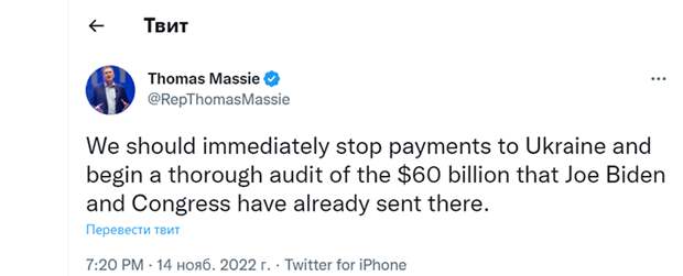 Мы должны немедленно прекратить выплаты Украине и начать тщательную проверку выделения тех 60 миллиардов долларов, которые Джо Байден и Конгресс уже направили туда,